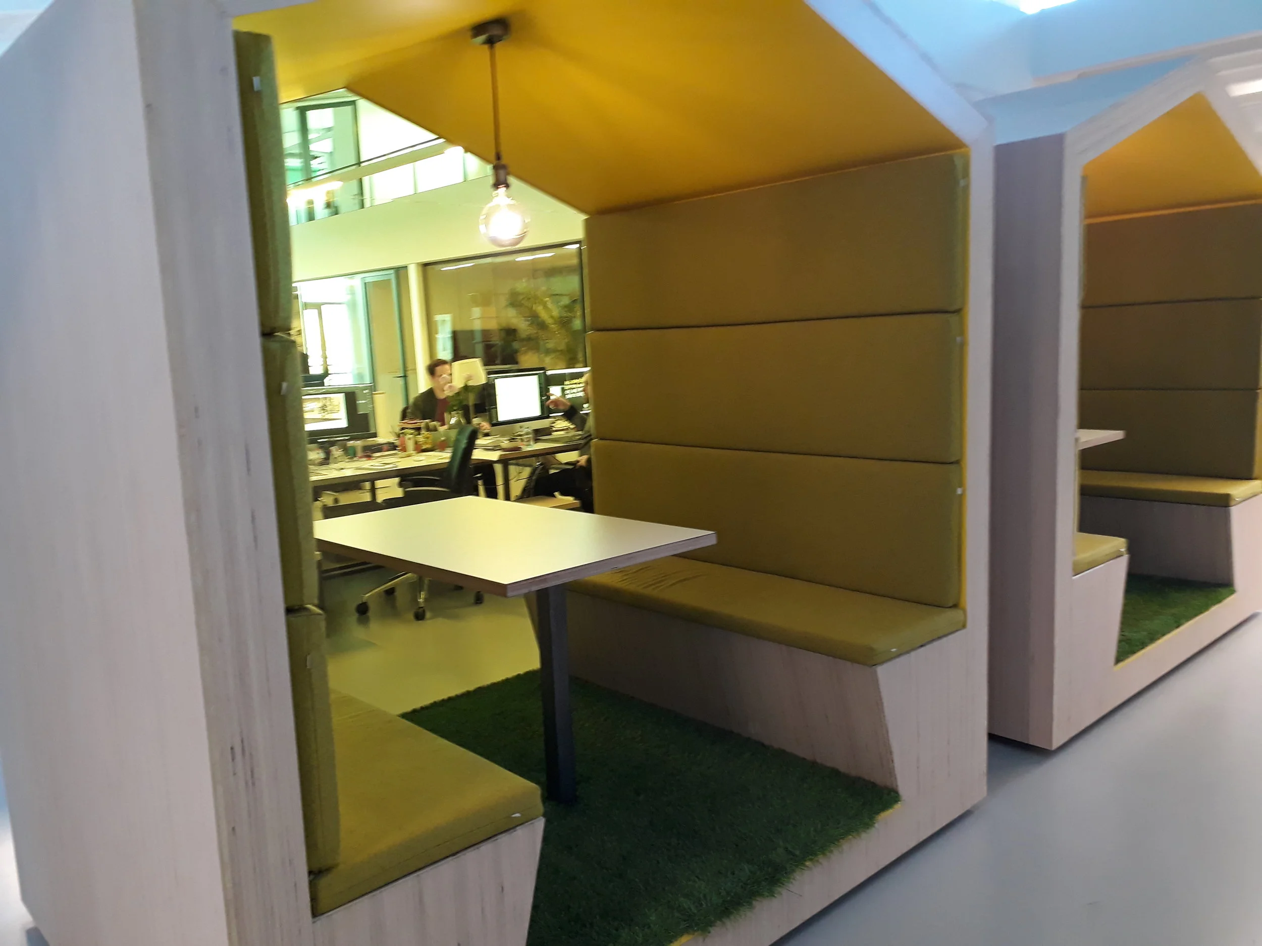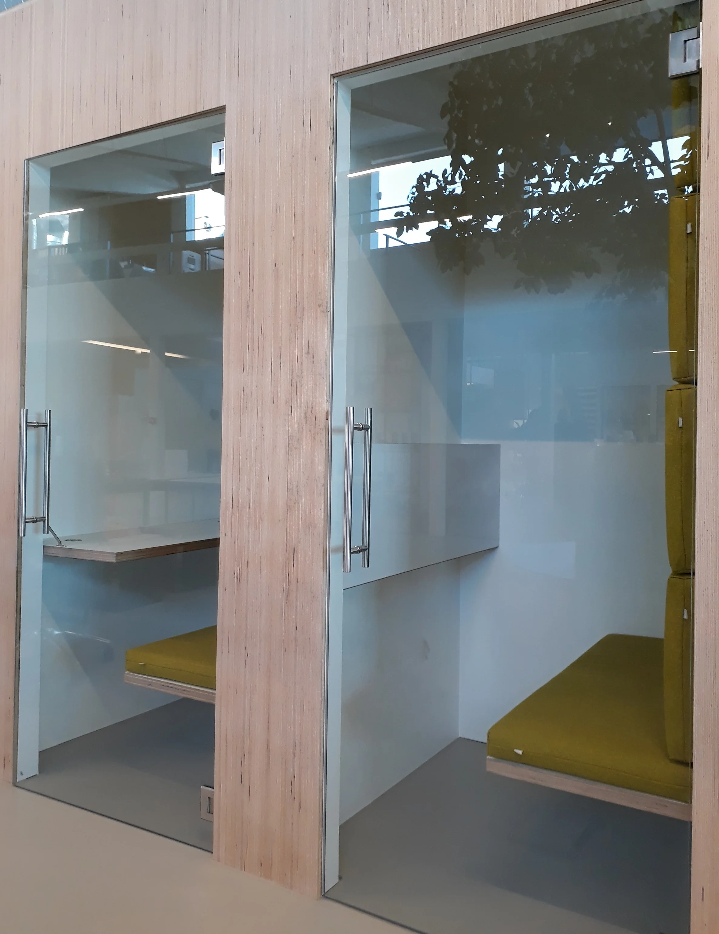 waar je ongestoord kan bellen en werken. Het tablet is opklapbaar voor gemakkelijke toegang. Het licht wordt automatisch bediend via een sensor.