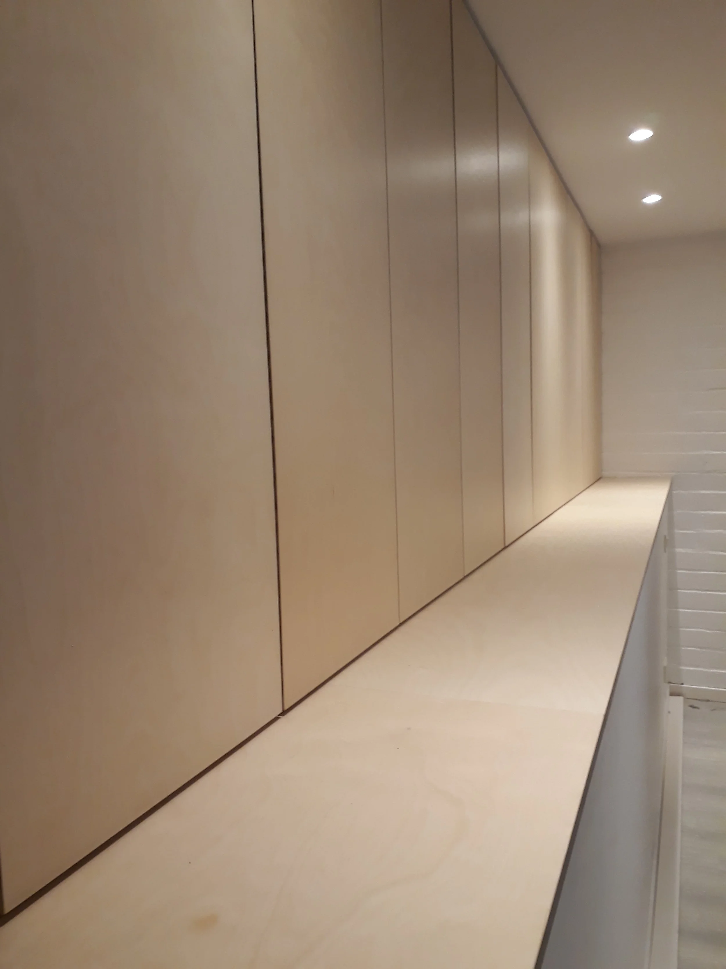 door het plaatsen van een valse wand en plafond in gipsplaat. Incl. electriciteitswerken.
